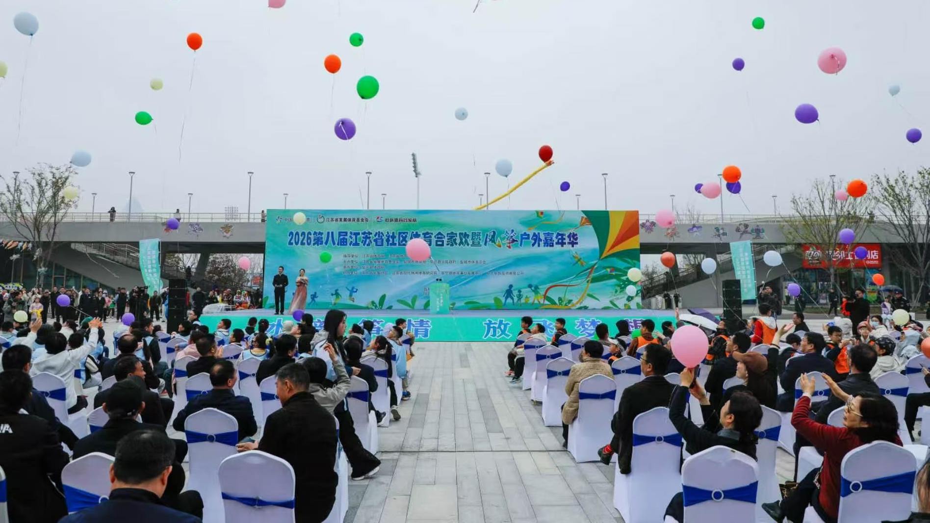 4月3日-4日,由中国体育彩票资助,江苏省体育局、省体育总会指导,省发展体育基金会、盐城市体育局、阜宁县人民政府联合主办的“2026 第八届江苏省社区体育合家欢暨风筝户外嘉年华活动”在盐城市阜宁县文体中心举行。