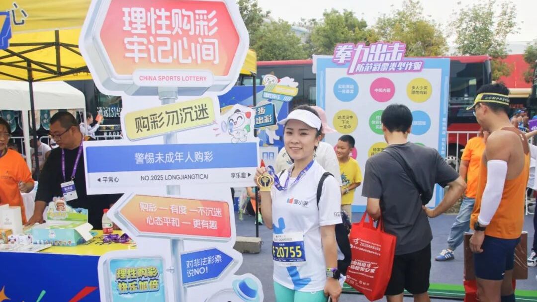 南通市“体彩先锋”志愿服务队在现场向群众宣传理性购彩。球赛开始前,南通市“体彩先锋”志愿服务队协助主持人开展“体彩知识小问答”,在趣味互动中向群众传递责任彩票理念。参与者每答对一题,便可获得体彩吉祥物“乐小星”公仔、折叠雨伞等小礼品。此外,现场还设置了体彩公益金宣传展架,志愿服务队队员们向群众发放理性购彩宣传单,图文并茂讲述“责任”内涵,提升公众理性购彩认识和防范非法彩票意识。