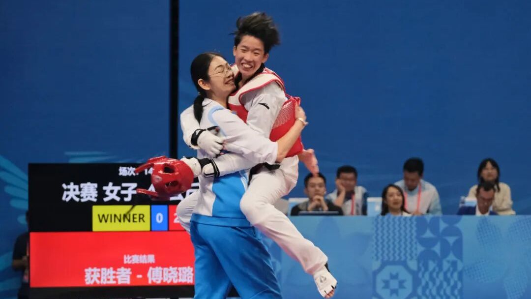 26日晚间站在十五运会跆拳道男子58公斤级决赛场上的黄科奋和余俊松是老对手了。前者来自广东跆拳道队,曾获得2024年全国跆拳道冠军总决赛男子58公斤级冠军,来自河南跆拳道队的余俊松则是今年全国跆拳道冠军总决赛该级别的金牌获得者。在这一场实至名归的“冠军对决”中,不善言辞的黄科奋战胜了在社交媒体上拥有90余万粉丝的知名“UP主”余俊松,但两人也都获得下个月参加于无锡举行的跆拳道世锦赛的资格,接下来两人将携手为国而战。“希望能够在世锦赛上展现出体育精神。”黄科奋质朴地表示。