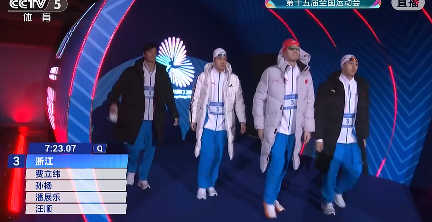 浙江队本场比赛由费立纬、孙杨、潘展乐、汪顺四人出战。在今年5月的全国冠军赛上,浙江队派出了相同阵容,最终夺冠。只是这次浙江队用了新的排棒模式,把最强的潘展乐放在第三棒,希望建立较大的优势之后,再让第四棒汪顺去顶住张展硕的追击。在国际赛场上,越来越多的队伍都是将最强选手放在二、三棒,希望能够建立优势,另外也希望最后压棒的选手能够在少吃浪的同时顶住对手的冲击。山东队由刘培鑫、赵一朴、李易峰、张展硕四人出战,阵容更为年轻。张展硕在本届全运会上展示了不俗状态,连续打破全国青年纪录,此前已经收获三金。