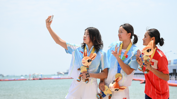 “让他休息一下吧,一会儿我们再过来接受采访。”4月25日,三亚亚沙会游跑两项收官战——混合接力鸣金。中国队林鑫瑜、滕云峰、陆美伊、罗云康以1小时01分44秒强势夺冠,至此中国队包揽本届亚沙会游跑两项全部三金。当2008年出生的小将罗云康冲过终点,前三棒队友立刻上前浇水降温、搀扶至休息帐篷,还贴心与混采区记者一一招呼。“铁人百炼成钢,首项为国争光”,这支年轻队伍尽显凝聚力与战斗力。