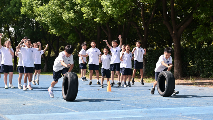 启动仪式尾声,一场别开生面的揭幕战火热开打。校队球员、老师、家长轮番上阵,运球、传球、投篮有模有样;场边小观众们挥舞着小手呐喊助威。下半场的“父子档”对决更是成为全场焦点——学生和家长同台竞技,激烈对抗在奔跑中上演。“我今天特别高兴!终于有机会在学校球馆和爸爸一起打球,还成功晃过了他!”五年级学生赵天樾兴奋地说,“相比于一对一的较量,五对五团队比赛能和队友并肩作战,乐趣更多、收获更大。”赵天樾的父亲赵柏林认为,这种家长队对阵学生队的形式十分新颖,“既带动孩子们坚持运动,也让家长们走出办公室、放下手机,在陪伴中强健体魄,践行全民健身理念。”