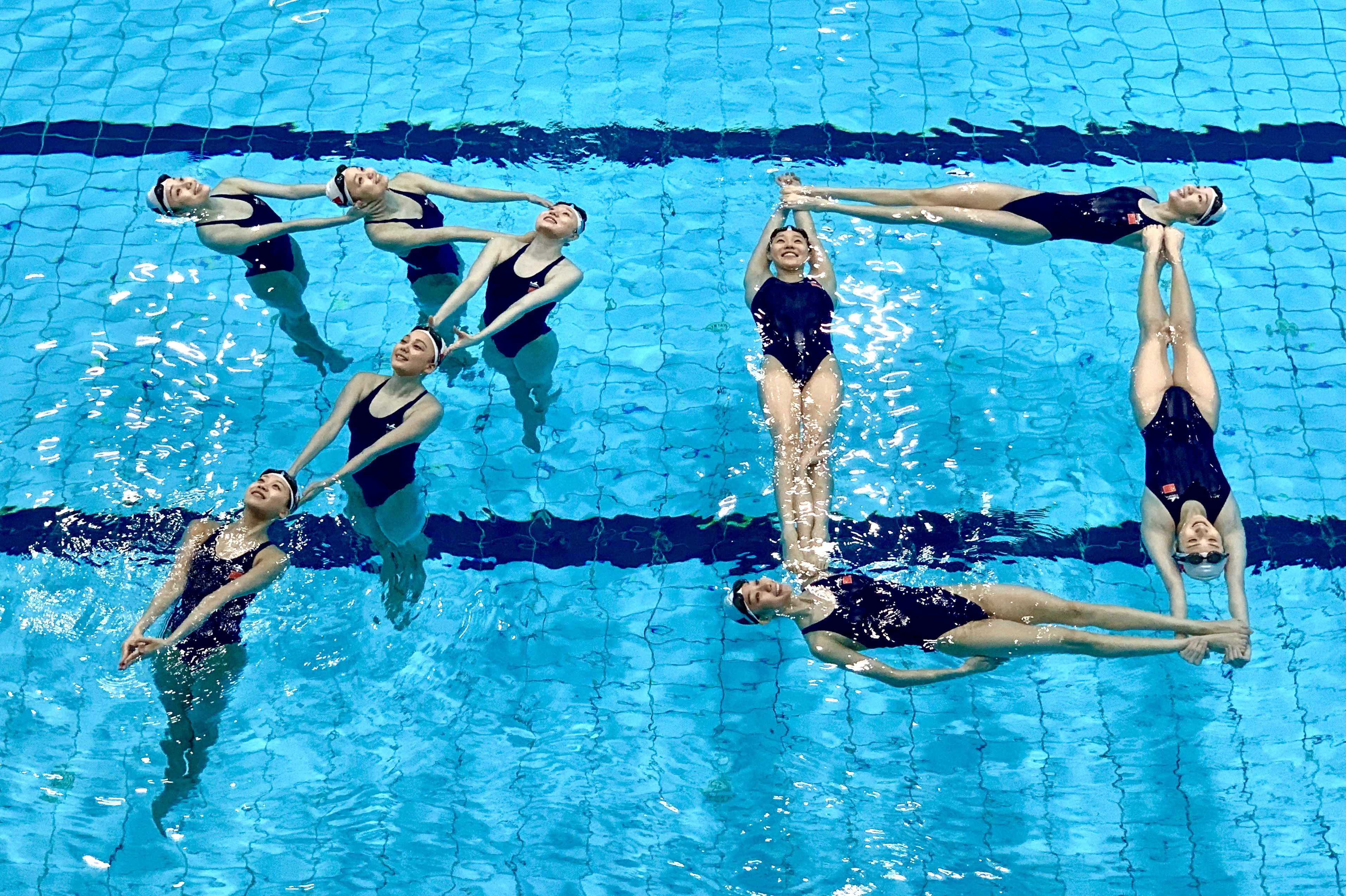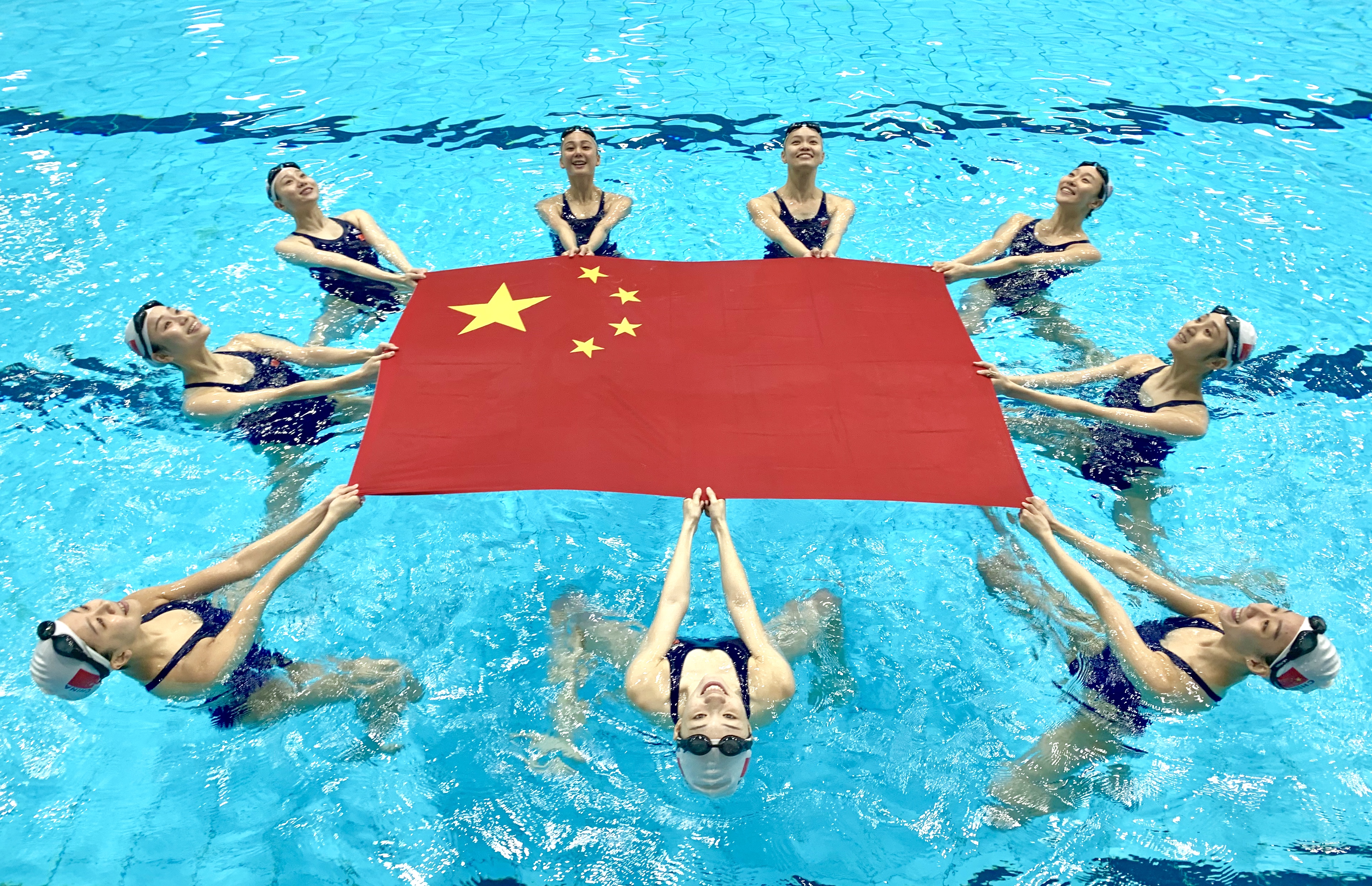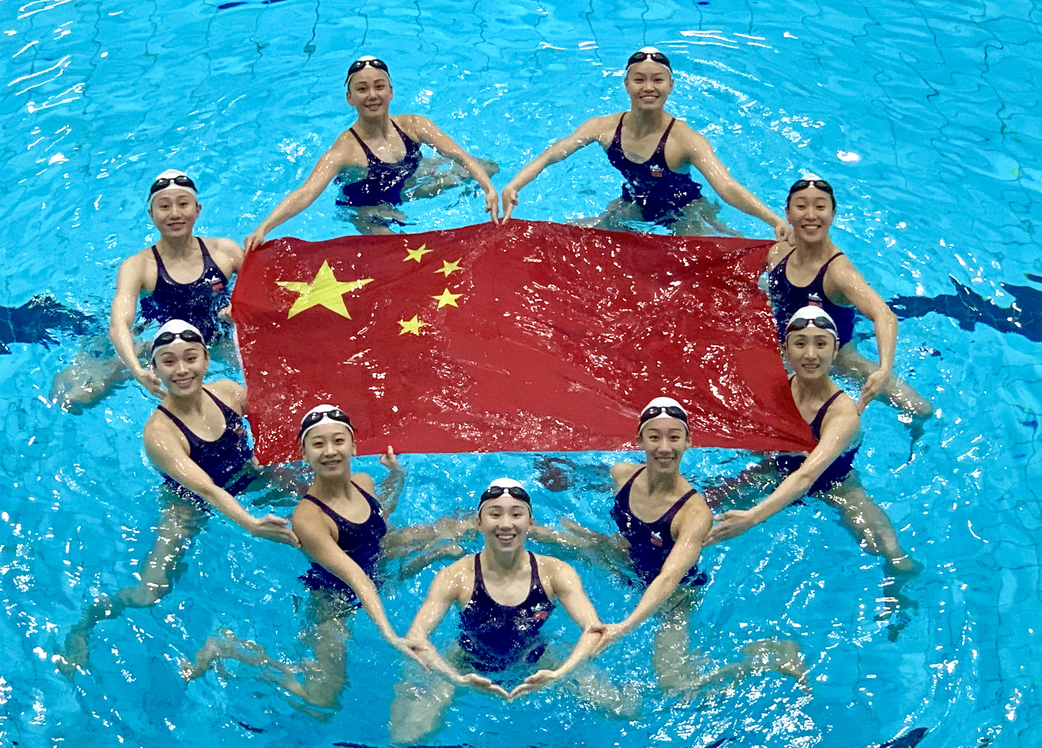 为迎接新中国成立70周年,国家花样游泳队的姑娘们用自己独有的方式为祖国送上祝福。(来源:国家花样游泳队)