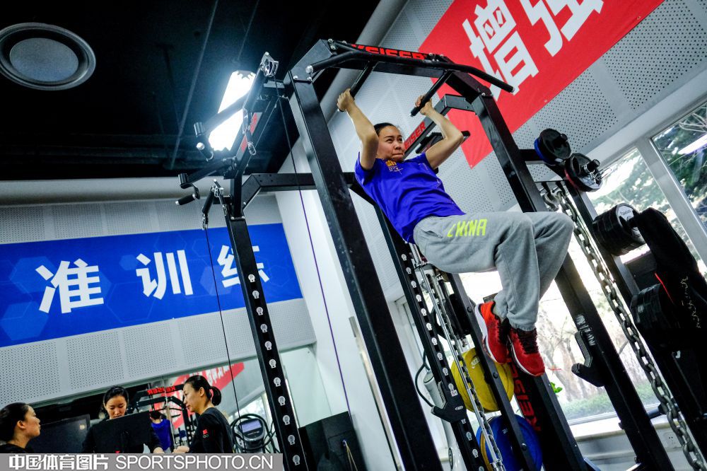 2019年12月9日,正在北京冬训的国家花样游泳队在国家体育总局训练局体能训练馆内进行科学有效富有针对性的体能训练,备战东京奥运会。(中国体育图片 安灵均 摄)