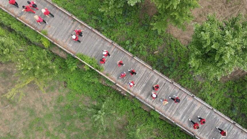 为贯彻落实全民健身国家战略,推动实施国家卫生健康委联合教育部、体育总局等16部门发起的“体重管理年”三年行动,近年来,亳州市文化旅游体育局积极推广普及华佗五禽戏,开展市直机关、企事业单位华佗五禽戏工间操活动,以及“进校园、进社区、进景区”活动,通过社区推广、校园干预、文旅融合等模式,让千年非遗焕发现代生命力。在亳州职业技术学院,五禽戏被纳入体育课必修内容,学生们穿着统一的练功服,在操场上演练“熊运”“鸟飞”,一招一式颇有章法。该校体育教师介绍:“以前学生体质测试合格率不到80%,引入五禽戏教学后,这个数字提升到92%,学生们的专注力和团队协作能力也明显增强。”