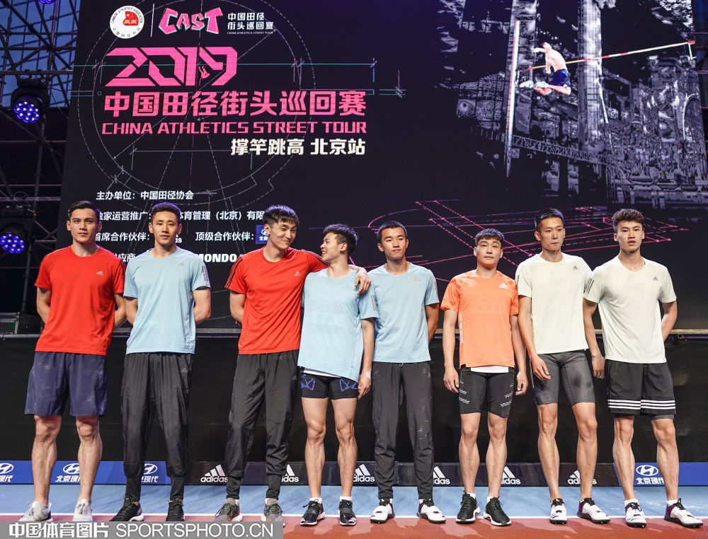 2019年6月15日晚,2019中国田径街头巡回赛——撑杆跳高北京站的比赛在北京世贸天阶进行,最终姚捷、张伟、丁邦超分获前三名。