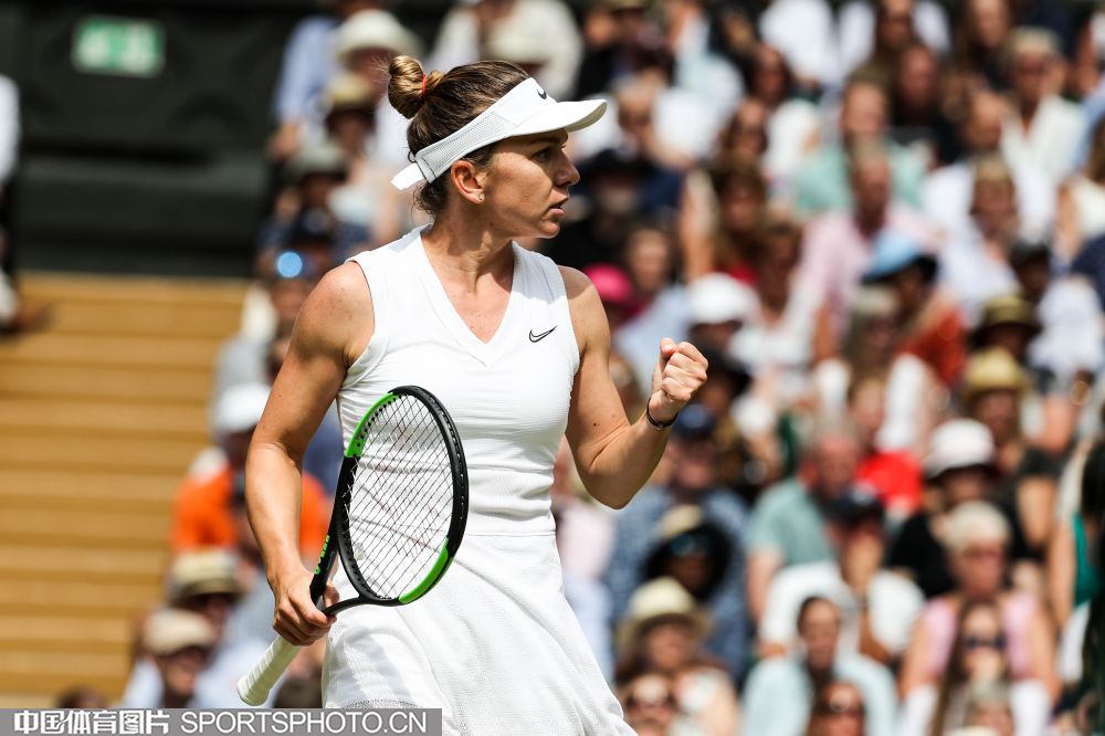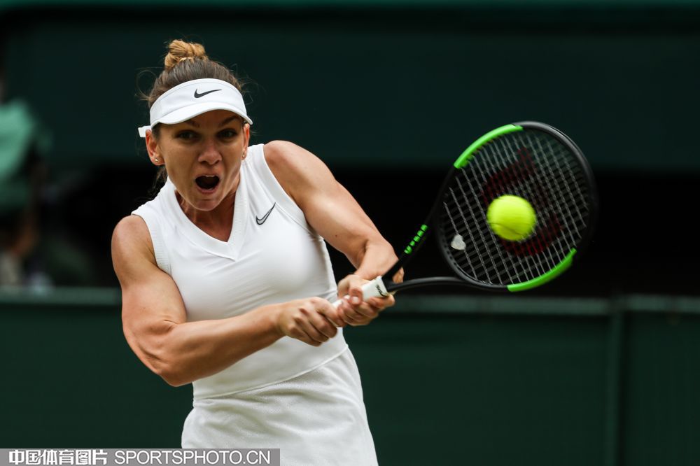 北京时间7月13日晚,2019温网结束女单决赛争夺,罗马尼亚选手哈勒普以两个6比2击败曾八次夺冠的美国选手小威廉姆斯,继去年法网夺冠后第二次赢得大满贯赛事女单冠军。图为哈勒普在比赛中。