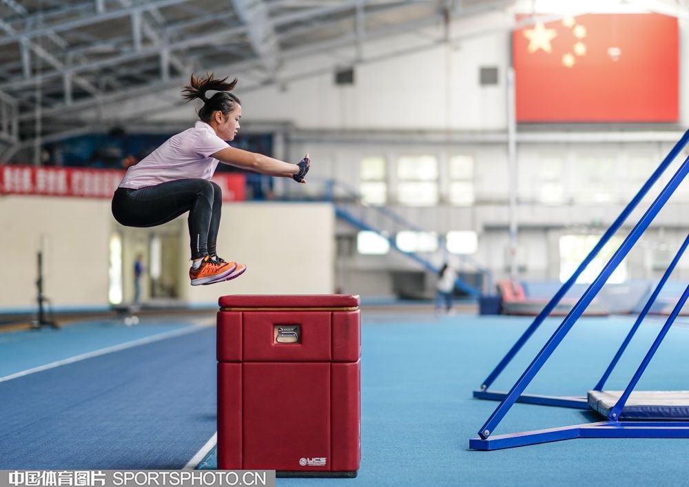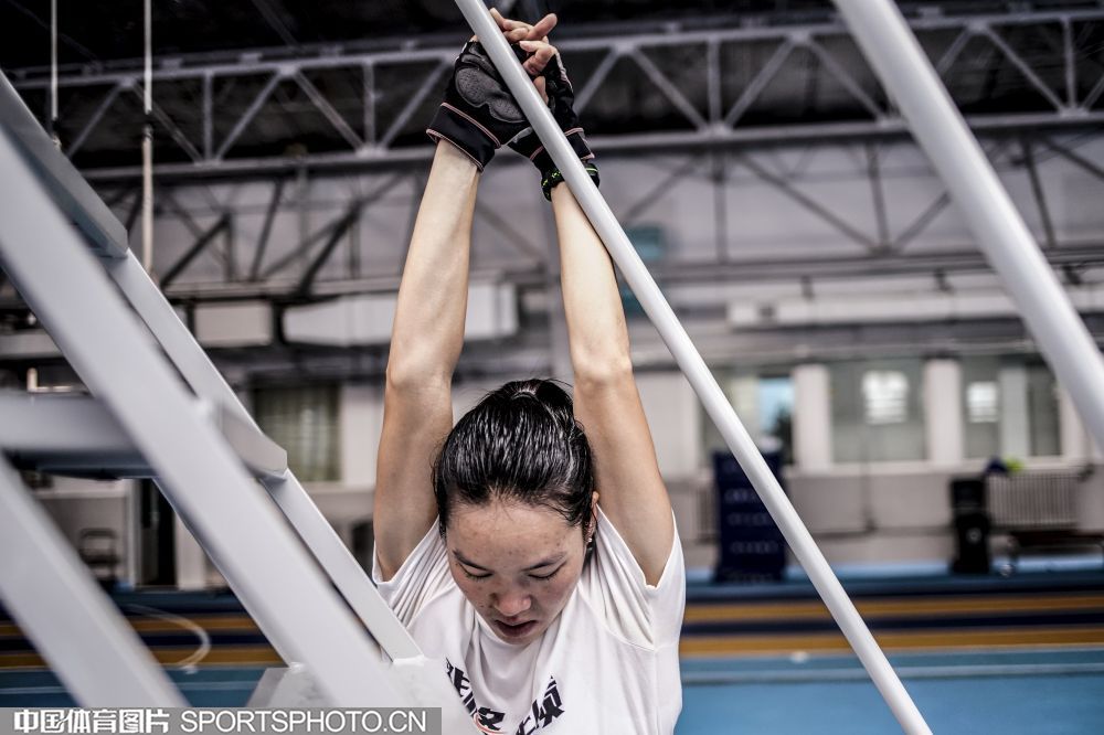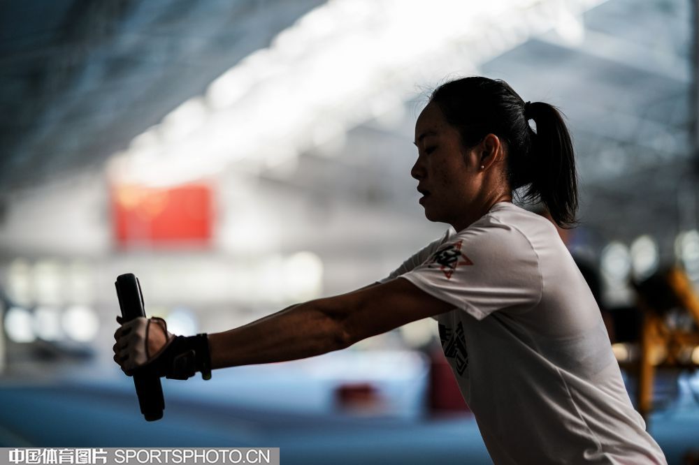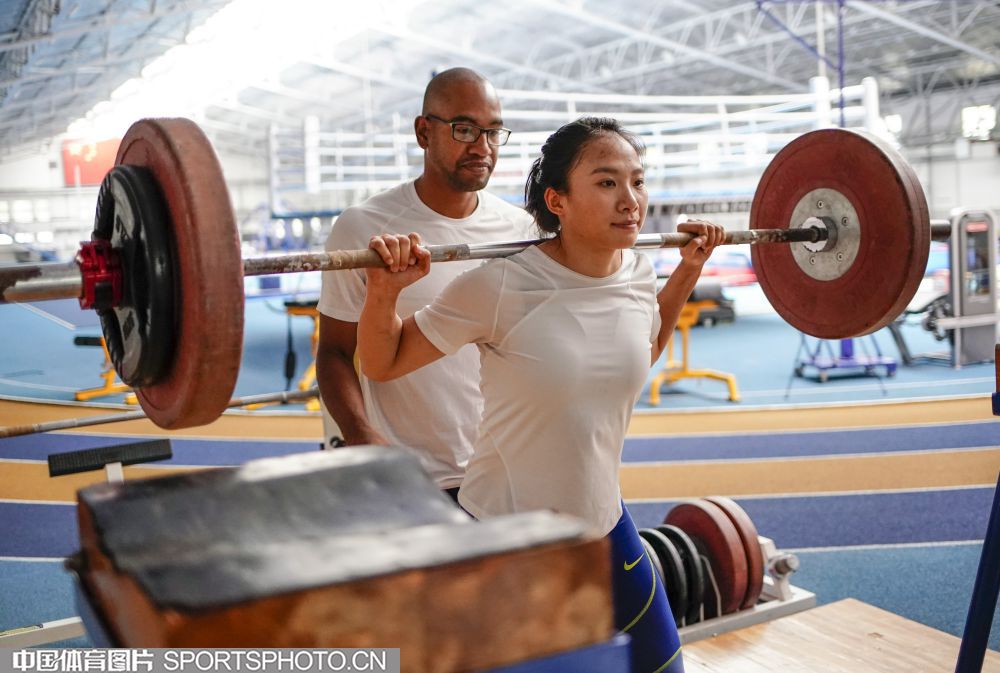 2019年7月25日,中国田径女子接力队部分运动员在位于北京的国家体育总局训练局田径馆进行力量训练。其中,韦永丽、梁小静两位选手在结束2019年国际田联钻石联赛伦敦站的比赛后,刚刚回到北京。