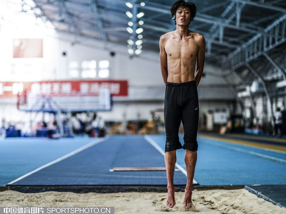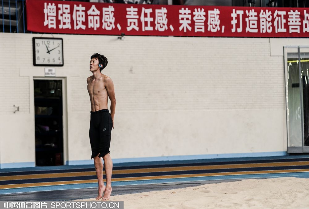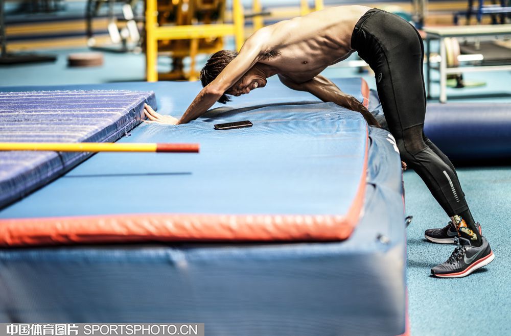 2019年7月25日,中国田径队男子跳高运动员张国伟在北京训练。图为张国伟在训练中。