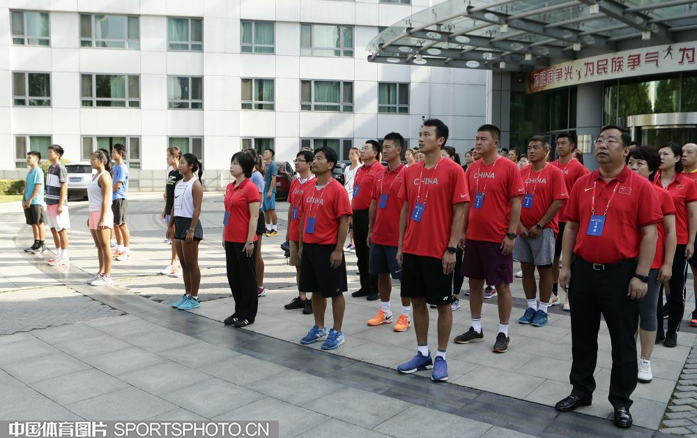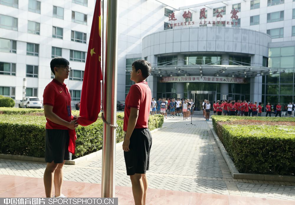 2019年7月25日,2019年中国国家网球队后备组选拔集训在北京奥体中心正式拉开帷幕。参与集训的全体成员在奥体公寓前集合参加升旗仪式,此次入选国家队网球后备组的运动员将是中国网球未来发展的中坚力量。