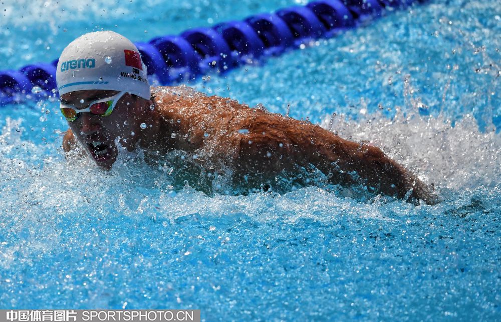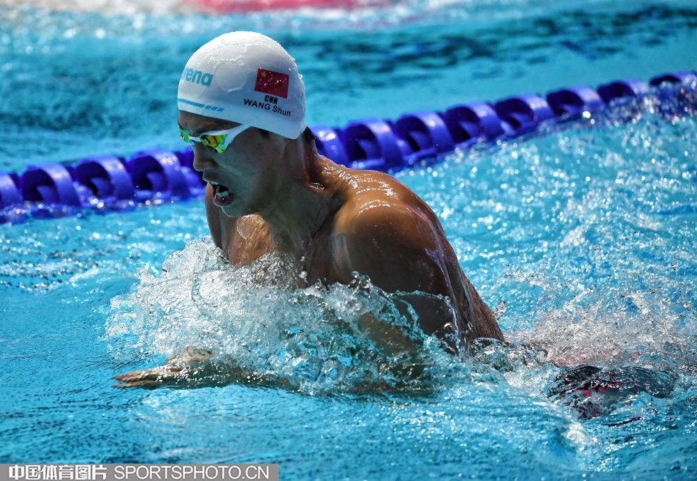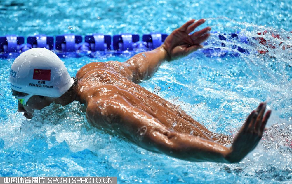 7月25日,2019年国际泳联世锦赛在韩国光州继续进行。中国选手汪顺在男子200米混合泳决赛的比赛中,以1分56秒97的成绩获得第六,日本名将濑户大也以1分56秒14的成绩获得冠军。图为比赛现场。
