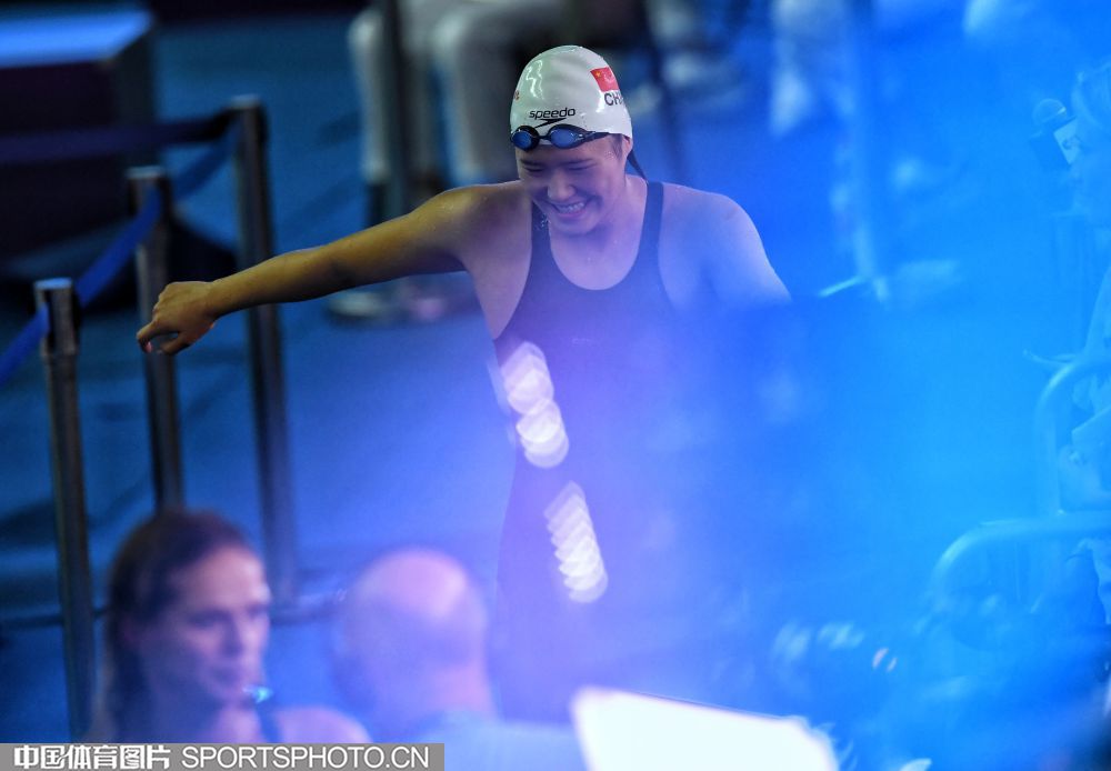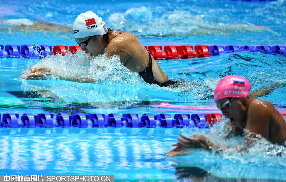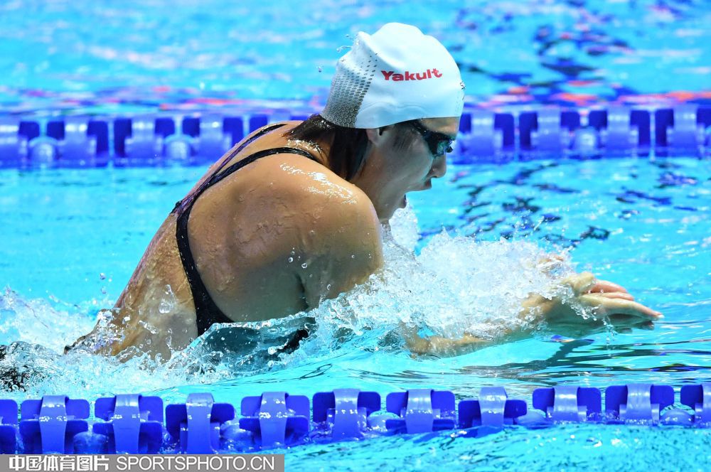 7月25日晚,2019国际泳联世锦赛在韩国光州继续进行。中国选手叶诗文在女子200米蛙泳半决赛中,游出2分23秒49,排名第五,成功晋级决赛。图为比赛现场。