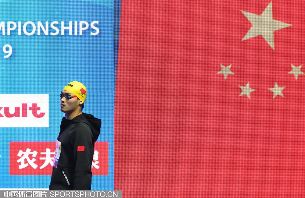 韩国当地时间7月27日,2019年国际泳联世锦赛进入倒数第二个比赛日,中国选手徐嘉余在男子50米仰泳半决赛中位列第六,顺利晋级决赛。图为徐嘉余赛前出场。