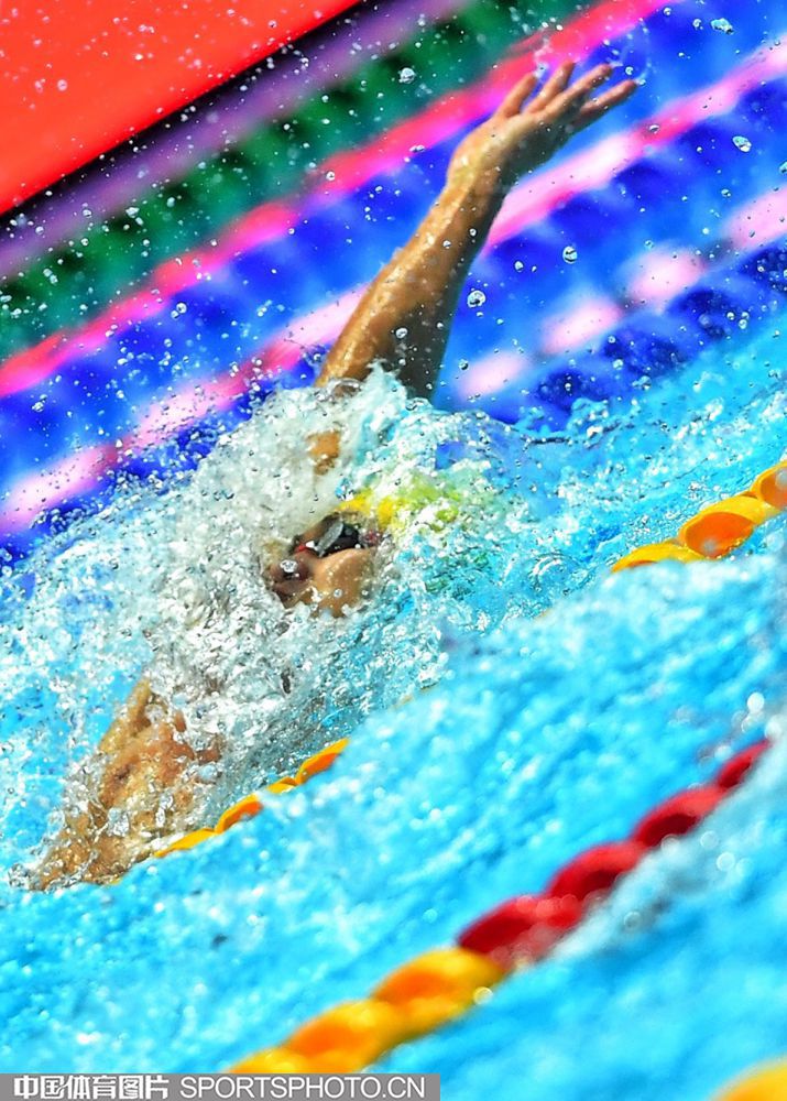 韩国当地时间7月27日,2019年国际泳联世锦赛进入倒数第二个比赛日,中国选手徐嘉余在男子50米仰泳半决赛中位列第六,顺利晋级决赛。图为徐嘉余在比赛中。