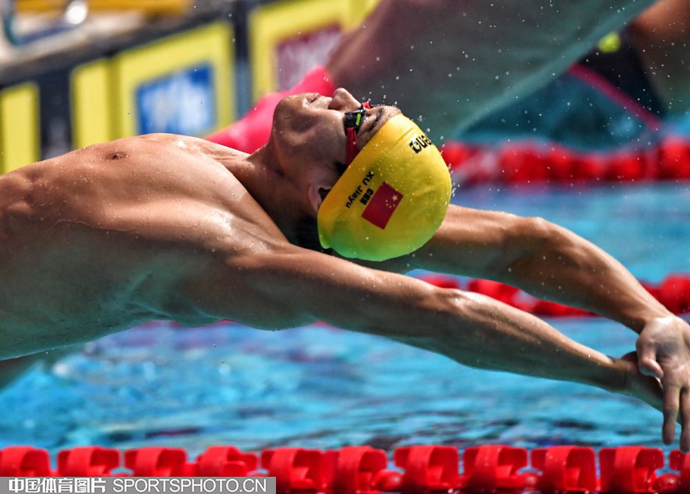 韩国当地时间7月28日,2019年国际泳联世锦赛结束最后一个比赛日的争夺,在男子50米仰泳决赛中,徐嘉余以24秒64的成绩收获第六名。图为徐嘉余在比赛中。
