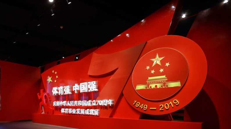 8月8日,《体育强中国强——庆祝中华人民共和国成立70周年体育事业发展成就展》在山西省太原市开幕。活动由国家体育总局主办,展览以图片、实物、视频和互动等形式,生动回顾了新中国体育事业70年的发展进程、展示了70年的辉煌成就、讲述了一幕幕动人的中国体育故事,弘扬了中华体育精神、传播了中华优秀体育文化。
