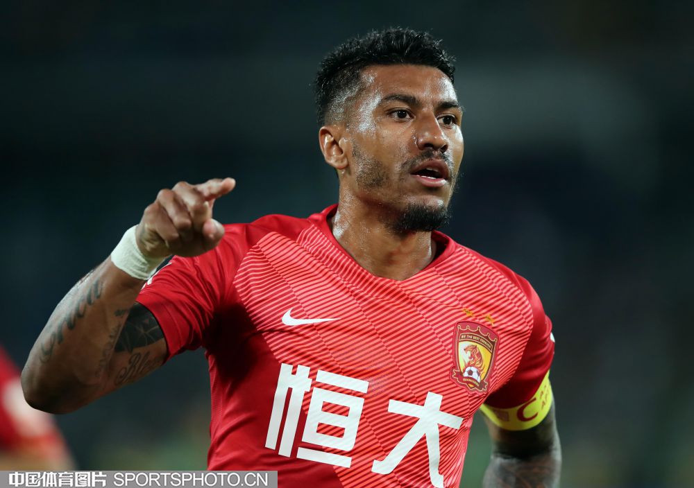 8月11日,2019赛季中国足球协会超级联赛继续第23轮争夺。在北京工人体育场,主场作战的北京中赫国安队(绿衣)以1比3负于广州恒大淘宝队(红衣)。图为保利尼奥庆祝自己进球。