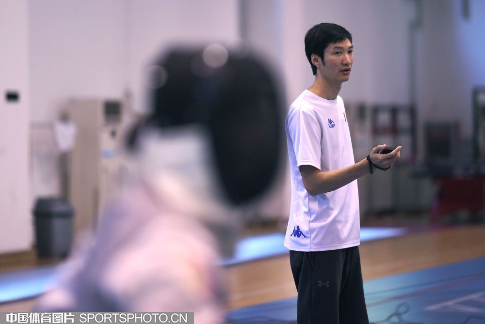 8月28日,中国击剑队女子花剑组在北京老山训练基地集训,备战奥运积分赛。图为教练雷声。