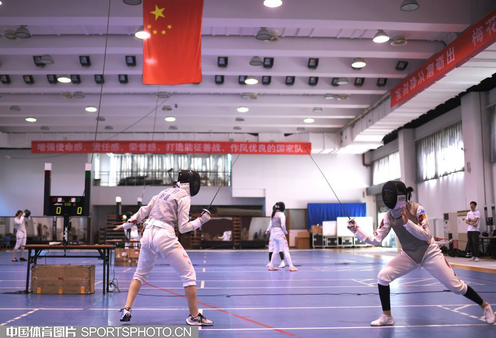 8月28日,中国击剑队女子花剑组在北京老山训练基地集训,备战奥运积分赛。图为吴培林。