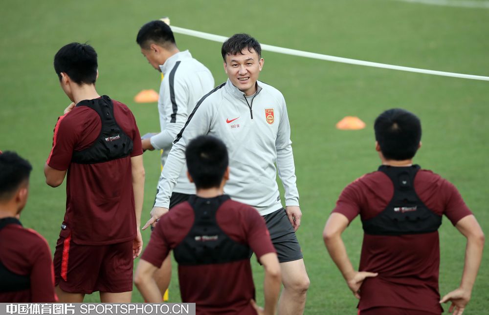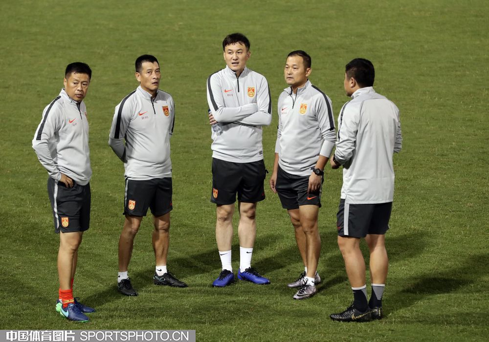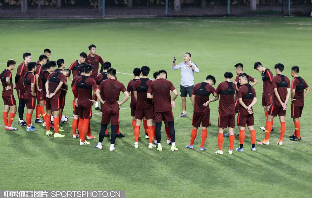 9月24日,中国国奥队在香河基地集结,执行教练郝伟和教练组成员带队进行首训。图为教练组成员。(王宪民 摄)