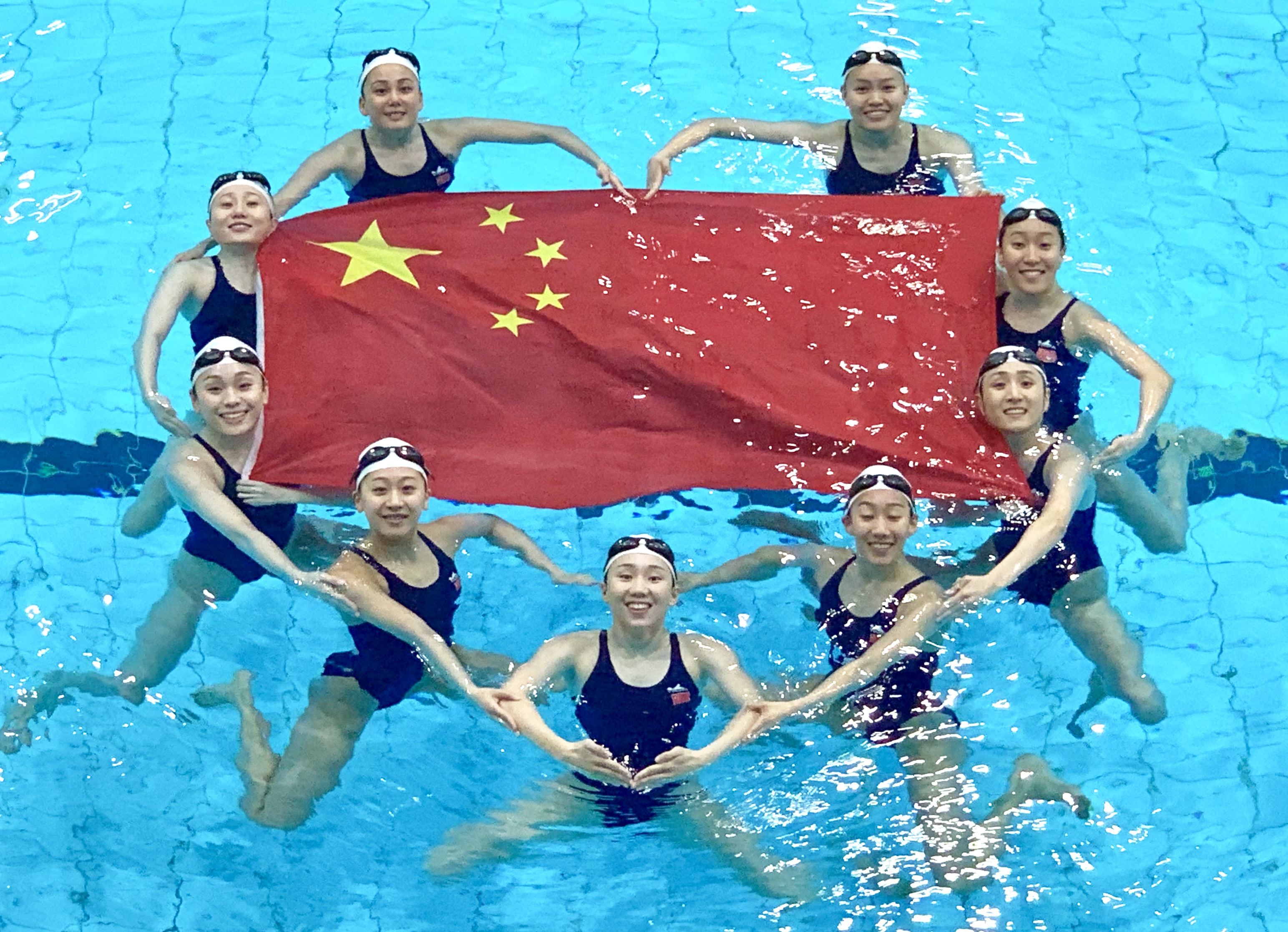 为迎接新中国成立70周年,国家花样游泳队的姑娘们用自己独有的方式为祖国送上祝福。(来源:国家花样游泳队)