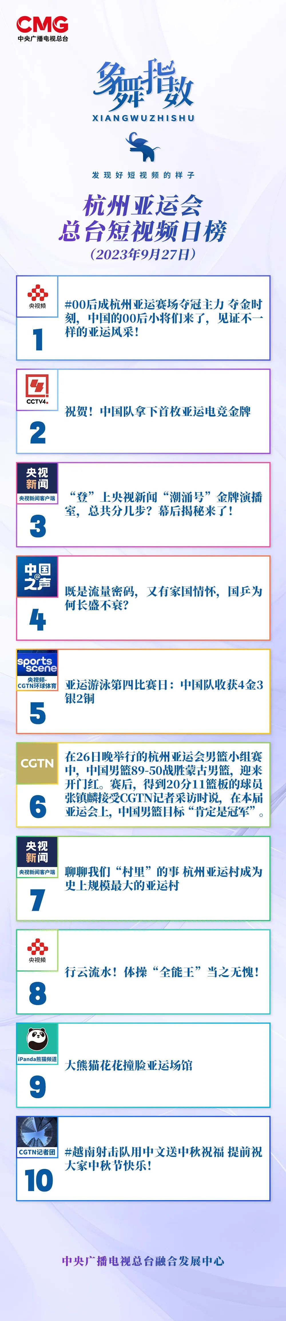 象舞指数|杭州亚运会短视频日榜(9月27日)