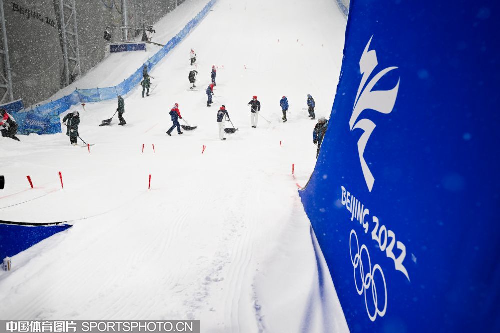 自由式滑雪女子坡面障碍技巧资格赛延期到14日举行,北京冬奥组委副主席杨树安在13日举行的发布会上回应称,云顶滑雪公园赛道需经过压雪、塑形、二次塑形,因此赛道不能有太多浮雪。当日早晨5点,张家口赛区已组织上千名工作人员前往赛场清理浮雪,但由于雪势既大又急,不能满足能见度要求,为确保运动员安全,当天的比赛延迟举行。