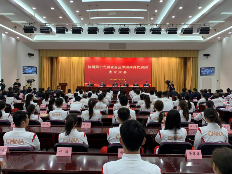 十九届亚运会中国体育代表团成立大会9月12日上午在北京举行。