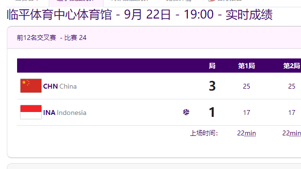 在9月22日晚结束的杭州亚运会男子排球前12名交叉赛中,中国男排以3-1(25-17、25-17、23-25、25-22)战胜印度尼西亚队,挺进下一阶段。