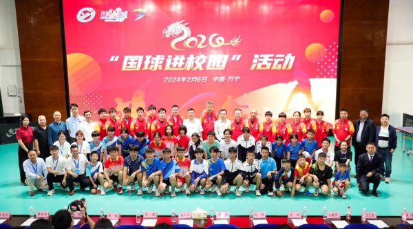 目前国乒正在海南万宁封闭集训,为即将到来的釜山世乒赛储备能量,在训练之余,国乒也积极参加社会公益活动。2月6日上午,2024年“国球进校园”活动在海南万宁举行,国乒在万宁市集训备战的主力运动员樊振东、王楚钦、马龙、梁靖崑、林高远、孙颖莎、王艺迪、陈梦、王曼昱、陈幸同利用训练调整的机会,走进北京师范大学万宁附属中学与学生进行面对面互动。