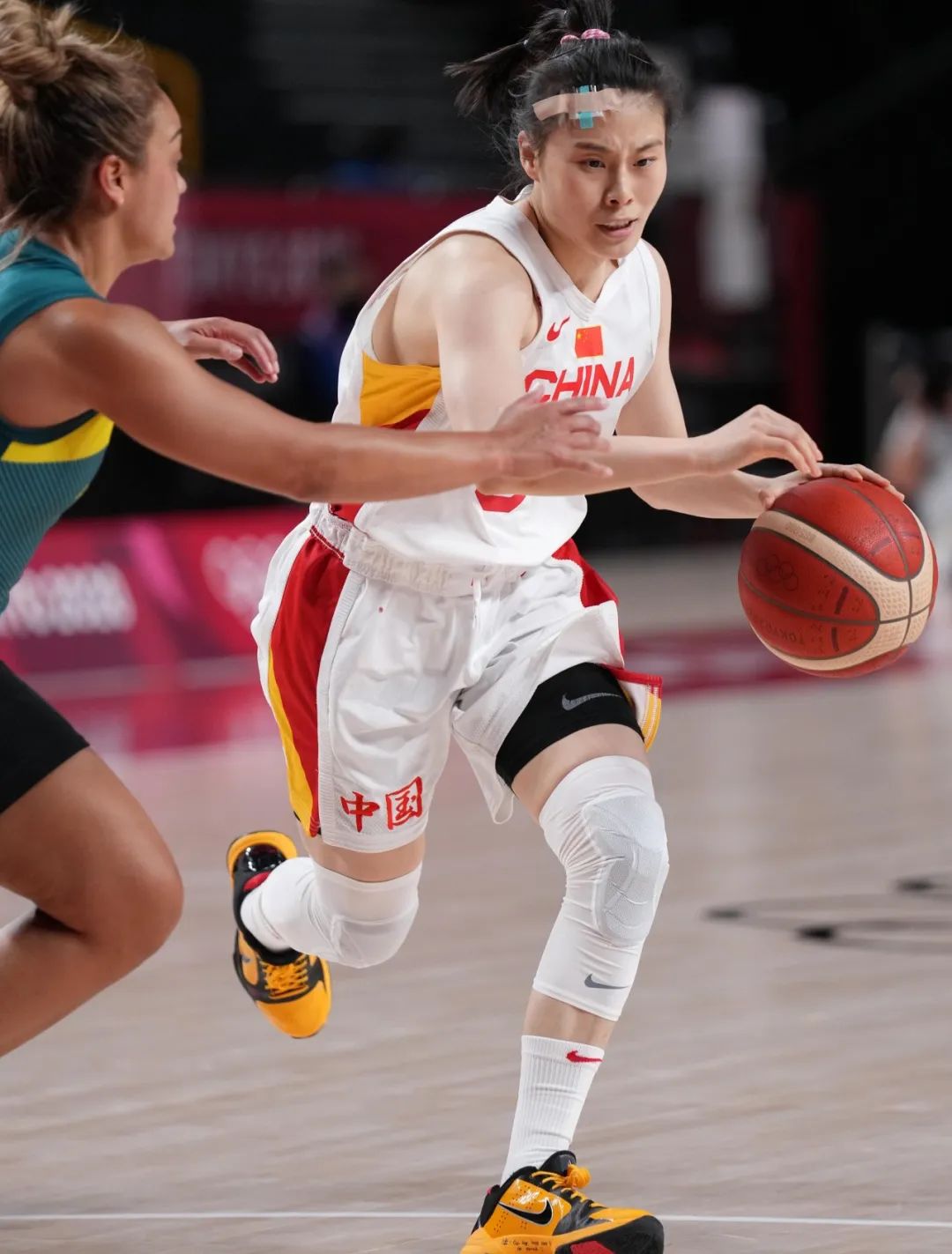 ↑王思雨(右)在比赛中突破