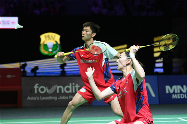 本站比赛国羽有郑思维/黄雅琼、冯彦哲/黄东萍、蒋振邦/魏雅欣、郭新娃/陈芳卉四对组合参加混双比赛,他们未输一场外战,最终独守上半区的郑思维/黄雅琼和下半区的蒋振邦/魏雅欣闯入四强。