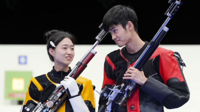 中国体育报·新体育网巴黎7月27日电 (记者 扈建华)从14比8拿到赛点,到被对手将比分追成14比12,这场金牌赛的气氛越来越紧张。当地时间27日进行的巴黎奥运会射击混合团体10米气步枪决赛中,第14组射击,韩国组合仍击发很快,打出10.6环、10.5环。盛李豪打出10.7环,这一刻,一直热闹的赛场也安静下来,全场都在等着黄雨婷的这一枪……