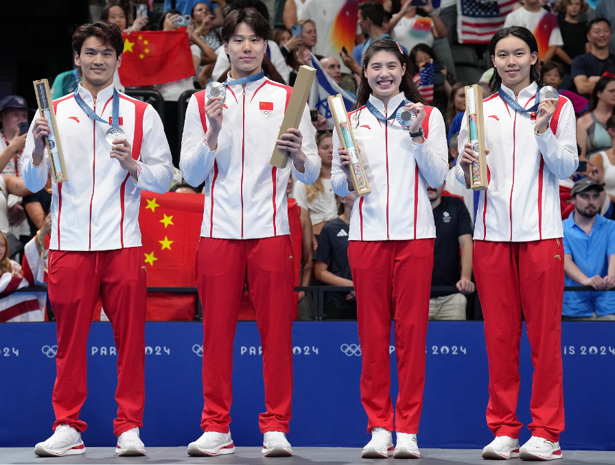 伴随着游泳比赛的推进,中国游泳队的夺金点也只剩下三个接力项目,而男、女4×100米混合泳接力无疑是最受关注的一个项目。最终在8月3日的比赛中,由徐嘉余、覃海洋、张雨霏、杨浚瑄组成的中国队获得银牌,3分37秒55的成绩超过原世界纪录,打破亚洲纪录。美国队以3分37秒43的成绩夺冠,并创造新的世界纪录。