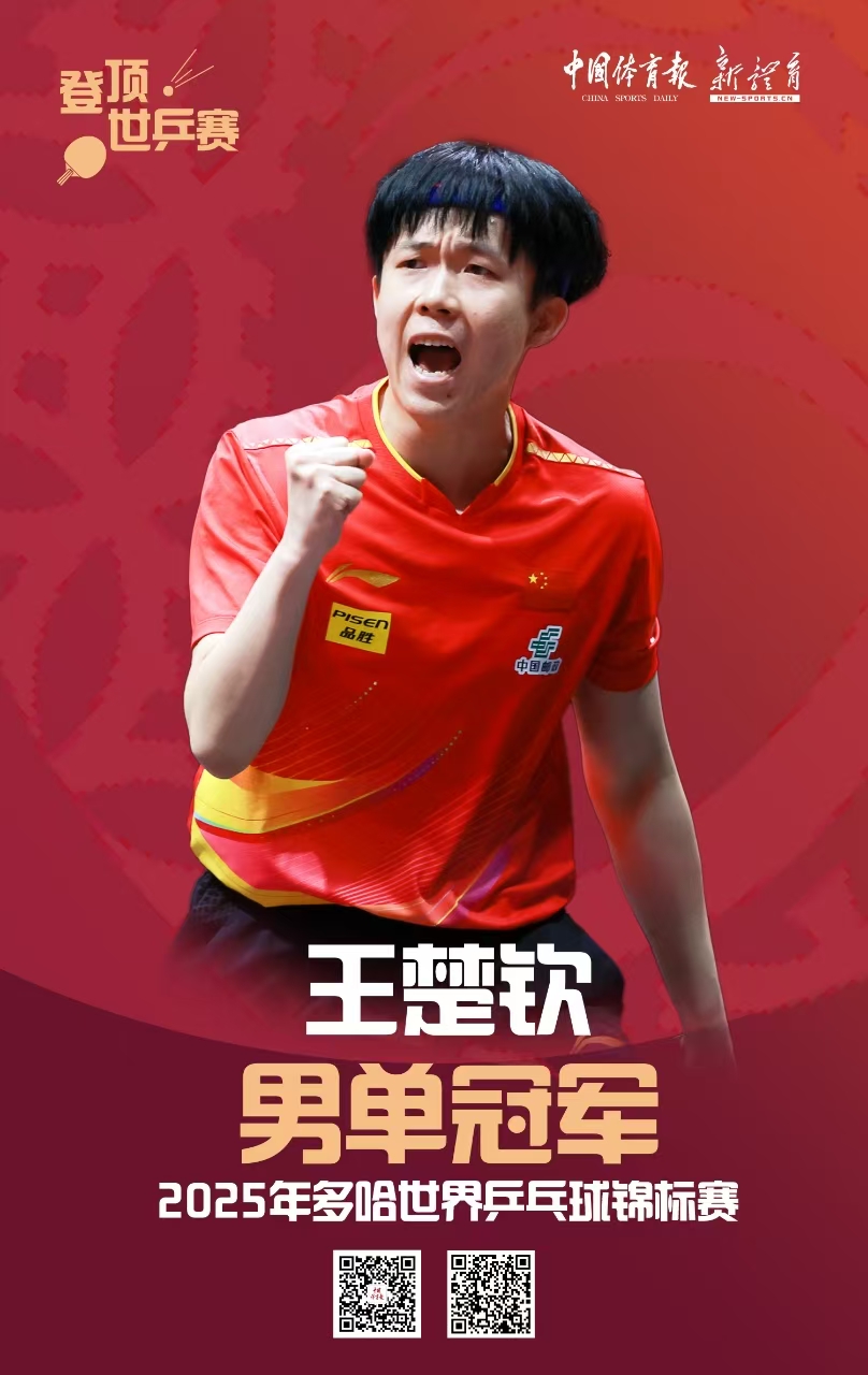 5月25日,时隔1个多月,世界排名第二的中国选手王楚钦与世界排名第三的巴西选手卡尔德拉诺在多哈世乒赛男单决赛中再度交手。王楚钦4比1取胜,首次问鼎世乒赛男单冠军,实现中国队世乒赛男单十一连冠。这也是王楚钦的首个三大赛单打冠军。