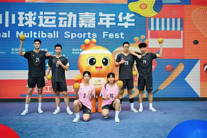 图形中巧妙融入小球轨迹与竞赛运动员的身姿,既具象又抽象,既展现运动瞬间的张力,也传递出大众参与、人人共享的运动精神。围绕主图形的10个小圆点,象征着嘉年华所涵盖的10项小球运动,同时寓意体育与文化的多元汇聚、交流融合。