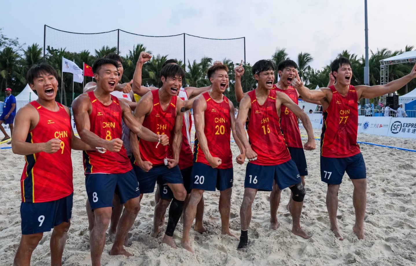 沙滩手球场馆共设置了1块包含3面看台的主比赛场地、1块副比赛场地和2块热身训练场地。21日上午,场馆迎来了第一批在此比赛的运动员,东道主中国队在1号场地完成亮相。当天烈日炎炎,观众热情却丝毫不减,节奏极快、对抗激烈的沙滩手球项目引来场边的阵阵欢呼。比赛结束后一分钟内,混合采访区已经挤满了各家媒体,中国沙滩手球运动员马会锋在镜头面前点赞三亚亚沙会,他表示:“本次亚沙会的服务周到,细节做得很好。”