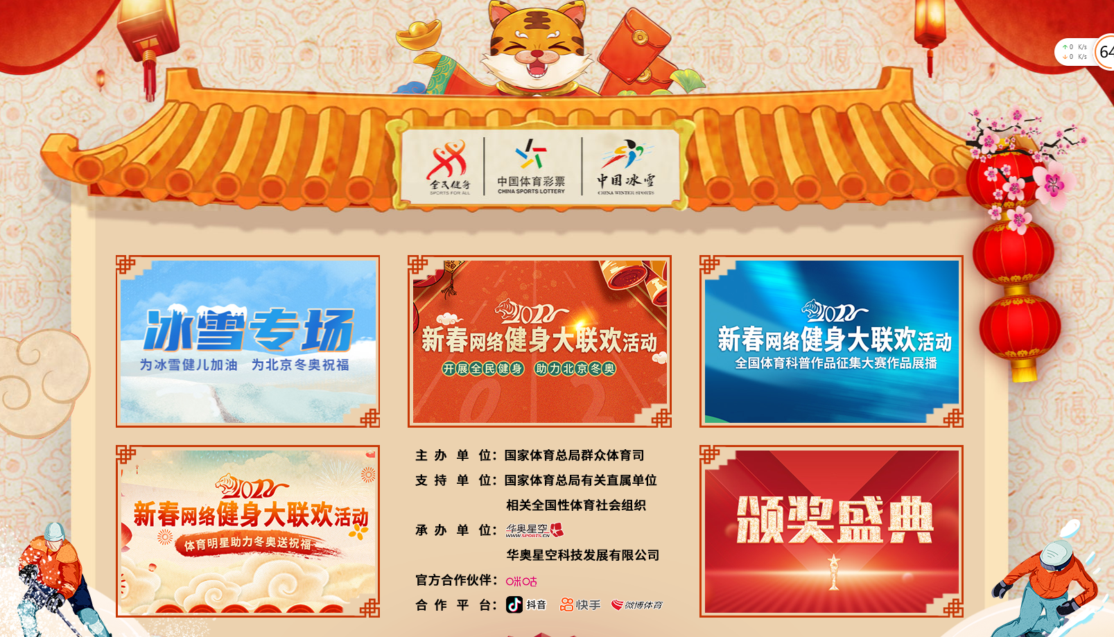 时值元旦,由国家体育总局群体司主办,总局各直属单位、各国家级体育协会(社团组织)支持,华奥星空承办的2022年新春网络健身大联欢活动正式上线。