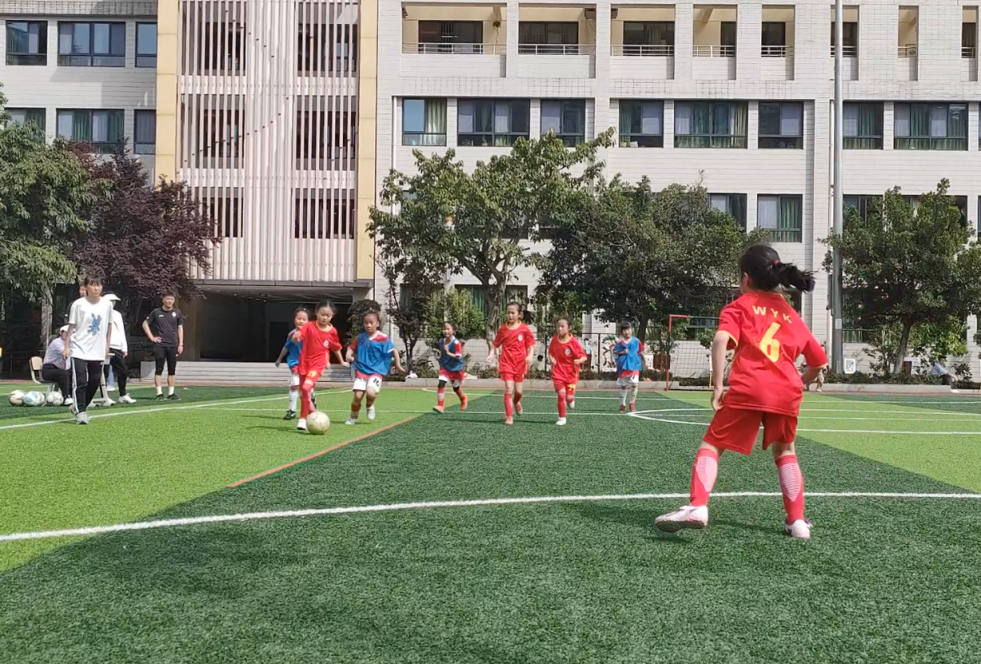 在操场上,趣味篮球训练组欢声笑语不断,志愿者风趣幽默的教学方式,很快和同学们打成一片;女子足球对抗组的同学们,奋勇争先精彩纷呈;滑冰入门组的同学们认真聆听志愿者的讲解,很快便滑得有模有样。