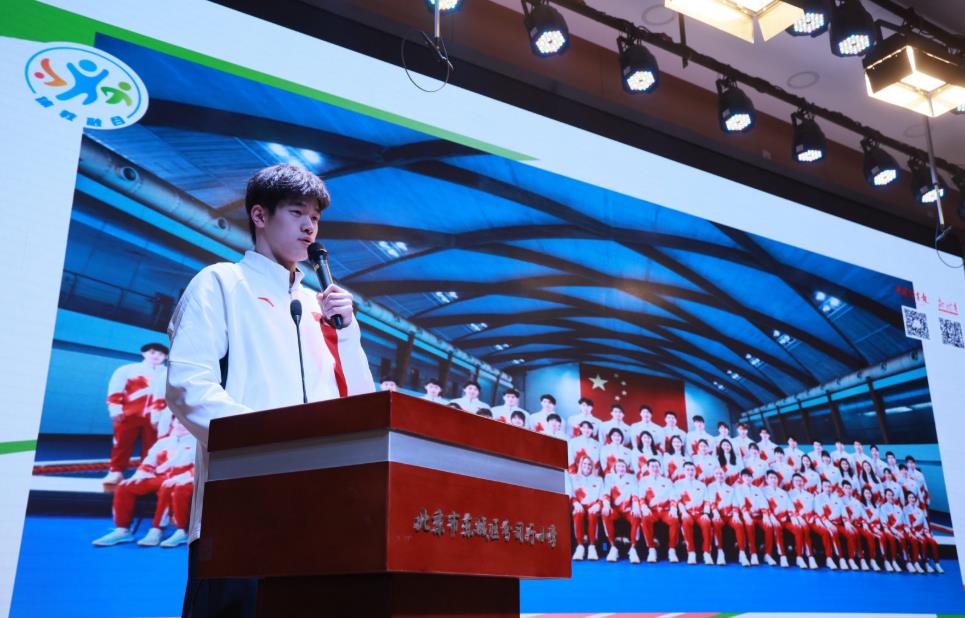 北京市东城区分司厅小学校长金辉表示,中国体育健儿是中华体育精神的一个缩影,中华体育精神承载着国家强盛、民族振兴的梦想。希望学生们向冠军学习顽强拼搏、永不服输的精神,并转化为参与体育锻炼的动力,做有理想、有本领、有担当的时代新人,成就精彩的人生。