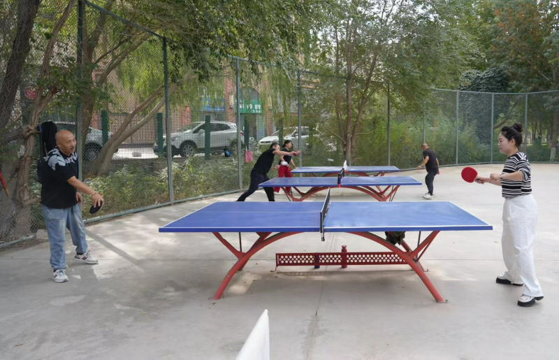 库尔勒市民高晓峰说:“孔雀公园绿树成荫,乒乓球设施完善,为市民提供了极大的便利。”