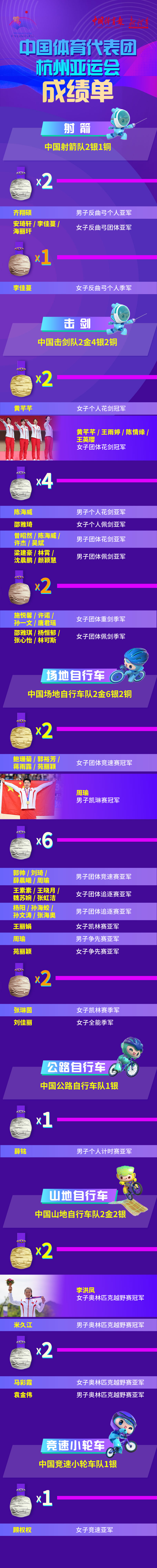 亚运融媒体丨中国体育代表团杭州亚运会成绩单