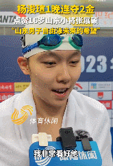 “年龄那么小就已经游到了我所企及不到的高度,希望他能接过中国游泳队中长距离的接力棒”