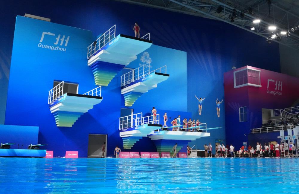 与现任广州市跳水队总教练的张雁全在广州重逢
