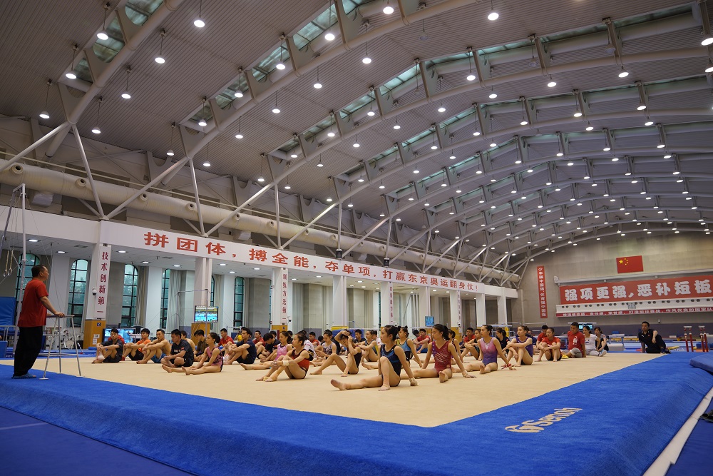 5月25日,中国体操队在国家体育总局训练局体操馆进行训练。(新体育网 刘霁 摄)