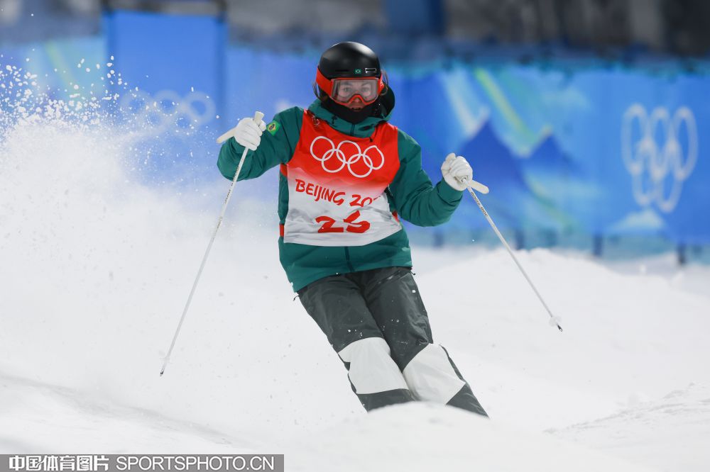 2022年2月1日,张家口赛区云顶滑雪公园,参加北京冬奥会的各国运动员进行自由式滑雪雪上技巧赛道训练。(中国体育图片 安灵均 摄)