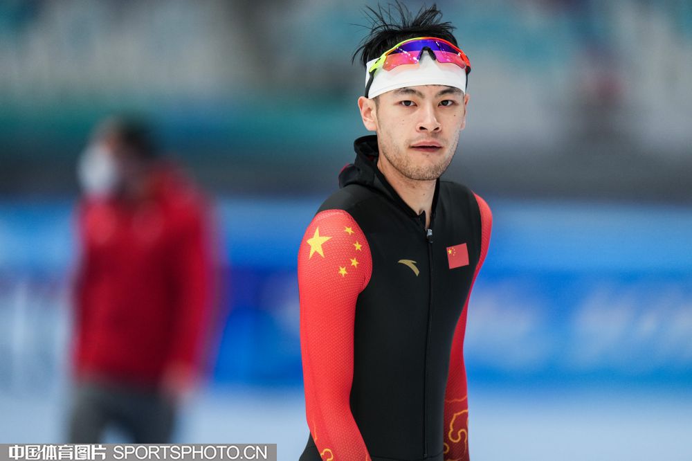 2022年2月2日,距离北京冬奥会开幕还有两天, 中国男子速度滑冰队在国家速滑馆“冰丝带”,继续训练备战即将到来的比赛。图为宁忠岩。(中国体育图片 倪敏哲 摄)