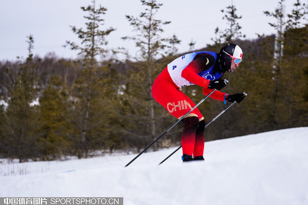 2月11日下午,北京冬奥会越野滑雪男子15公里(传统技术)比赛结束。在97名参赛选手中,中国队四名选手尚金财、刘荣胜、哈得斯·巴德里汗、次仁占堆分别获得第41、47、57、63名。图为中国选手在比赛中。(图片来源:中国体育图片)