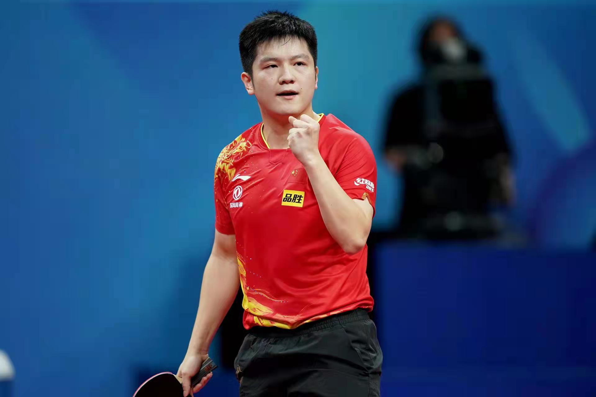10月8日,成都世乒赛团体赛展开男团半决赛较量,由樊振东、马龙、王楚钦出战的中国队以3比2战胜日本队,挺进决赛。图为樊振东在比赛中。(赛事主办方供图)
