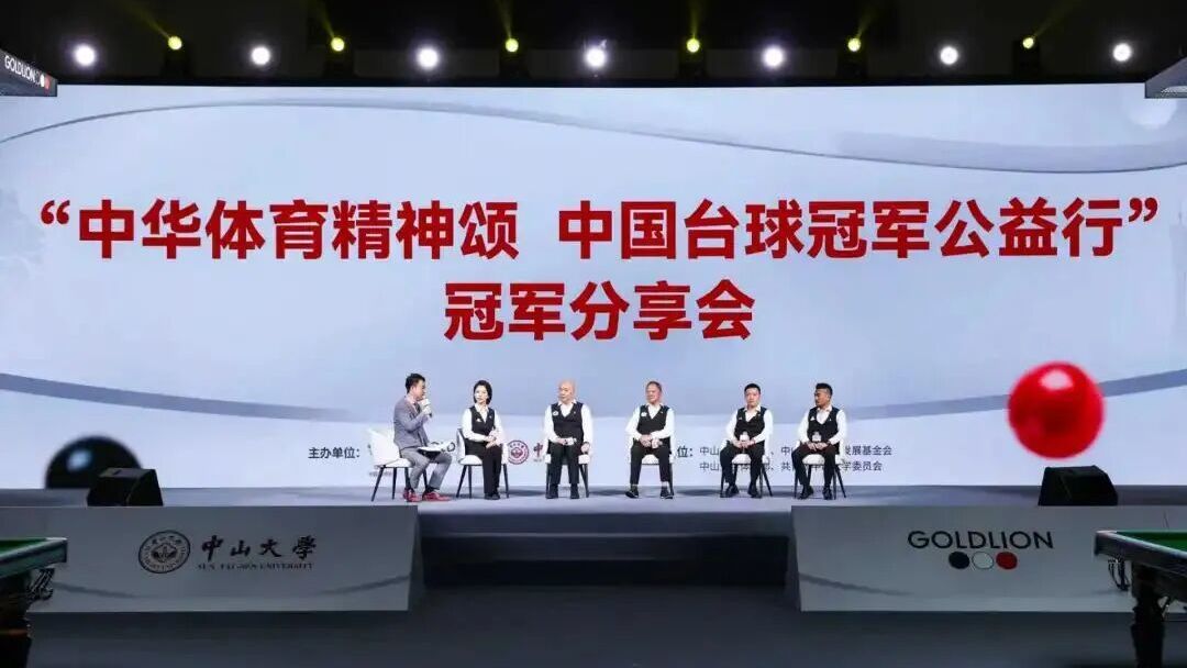 “弘扬中华体育精神台球冠军公益行动”首站活动近日走进广州中山大学,潘晓婷、党金虎、薛珍麒、伍文忠、李建兵等知名台球运动员参加。